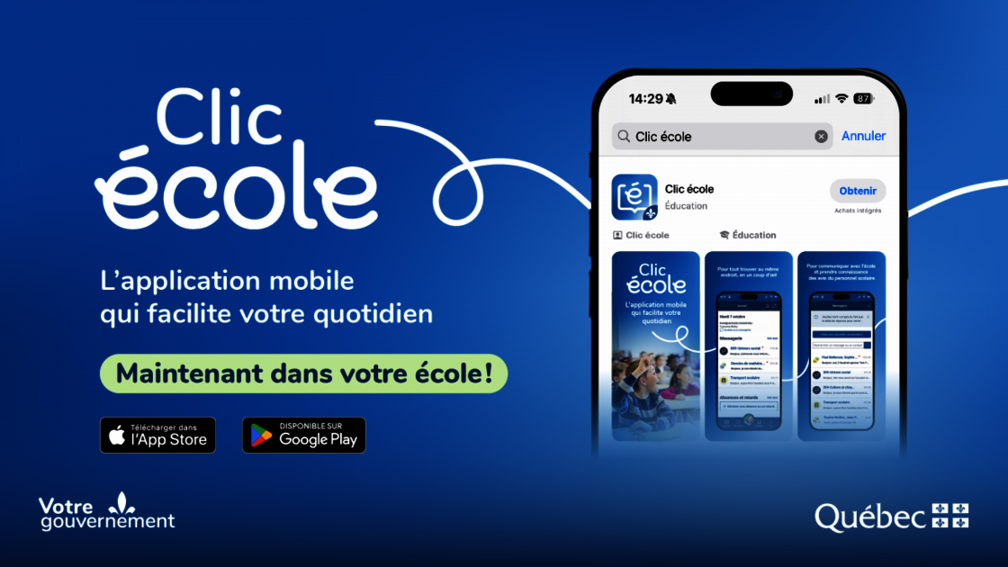 Si ce n'est déjà fait, nous vous invitons à télécharger l'application mobile Clic École sur App Store ou Google Play, selon le type de téléphone mobile que vous utilisez.