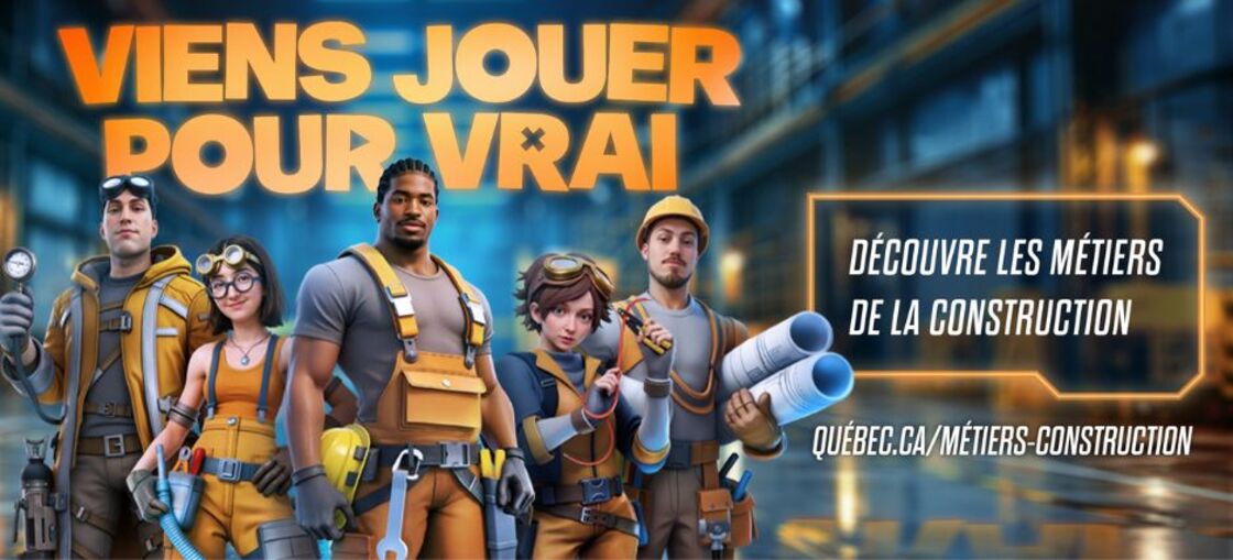 Inspirée de l’univers des jeux vidéo, cette campagne met en lumière des métiers en forte demande, essentiels à la réalisation des grands projets d’infrastructure du Québec.